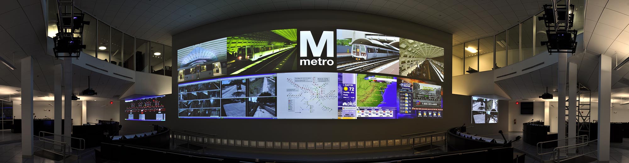 We offer complete control room, video wall and visualization solutions for transportation environments, including: