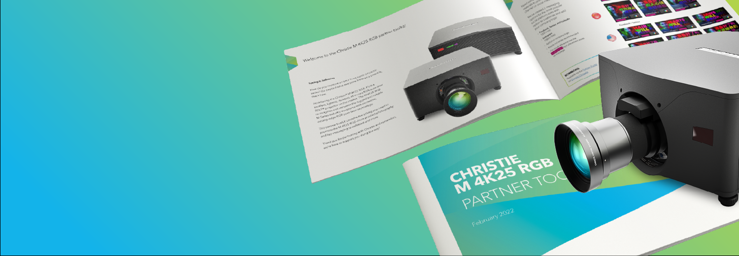 Introducing the Christie® M 4K25 RGB laser projector. The M 4K25 RGB re-imagines and reinvents the rugged and reliable M Series industry workhorse with innovative, cutting-edge RGB pure laser technology. Download the Christie M 4K25 RGB toolkit guide (PDF) » This partner toolkit contains everything you need to promote the M 4K25 RGB—from product photography and key messaging to collateral and more. Download everything or just a selection of the assets you need. |